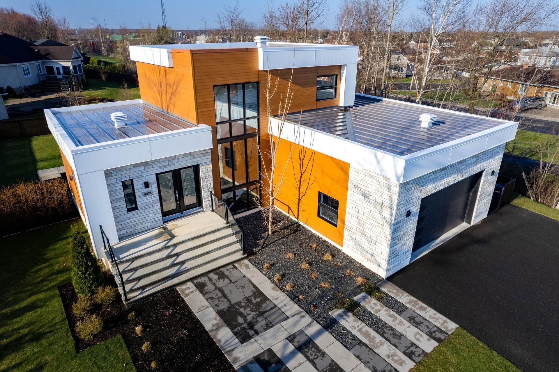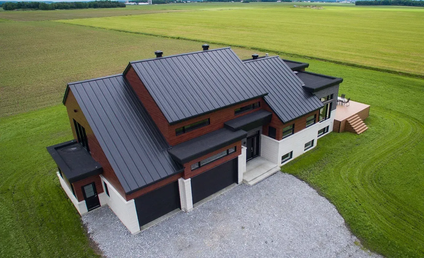 Parcourez cette galerie pour découvrir des exemples concrets de notre contribution à divers projets de ferblanterie partout au Québec. Nous collaborons avec des entrepreneurs, architectes et particuliers pour concevoir et fabriquer des toitures métalliques, du revêtement extérieur et du pliage sur mesure, adaptés à chaque besoin.