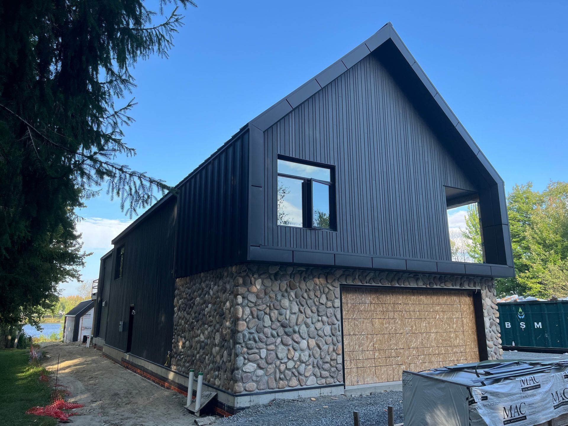 Les options populaires incluent l'acier, le vinyle, le bois d'ingénierie (comme Canexel), le fibrociment, la brique, la pierre et l'aluminium.
